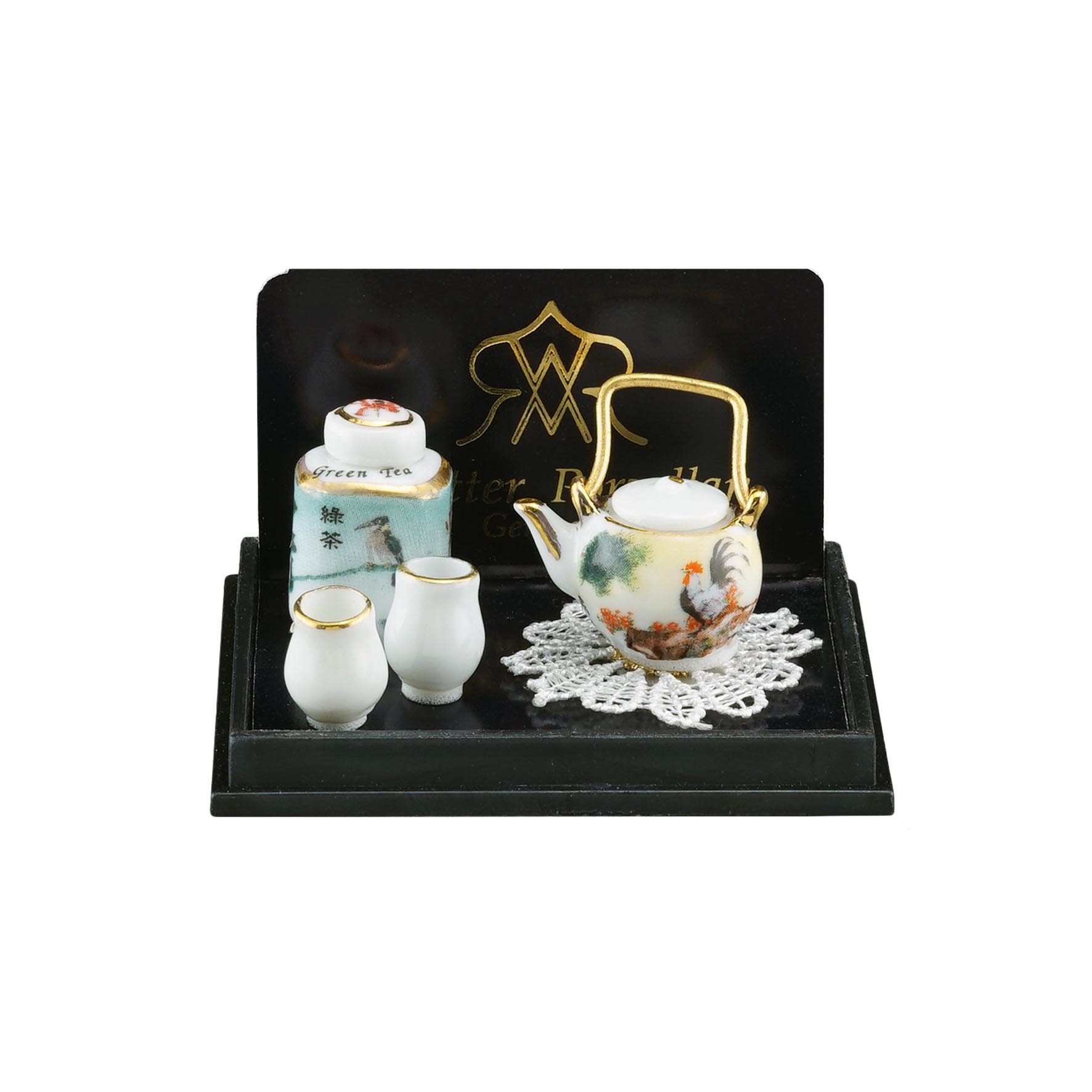 We manufacture Porcelain Miniatures such as sets for coffee, tea or dinner as dollhouse miniatures on a scale of 1:12.